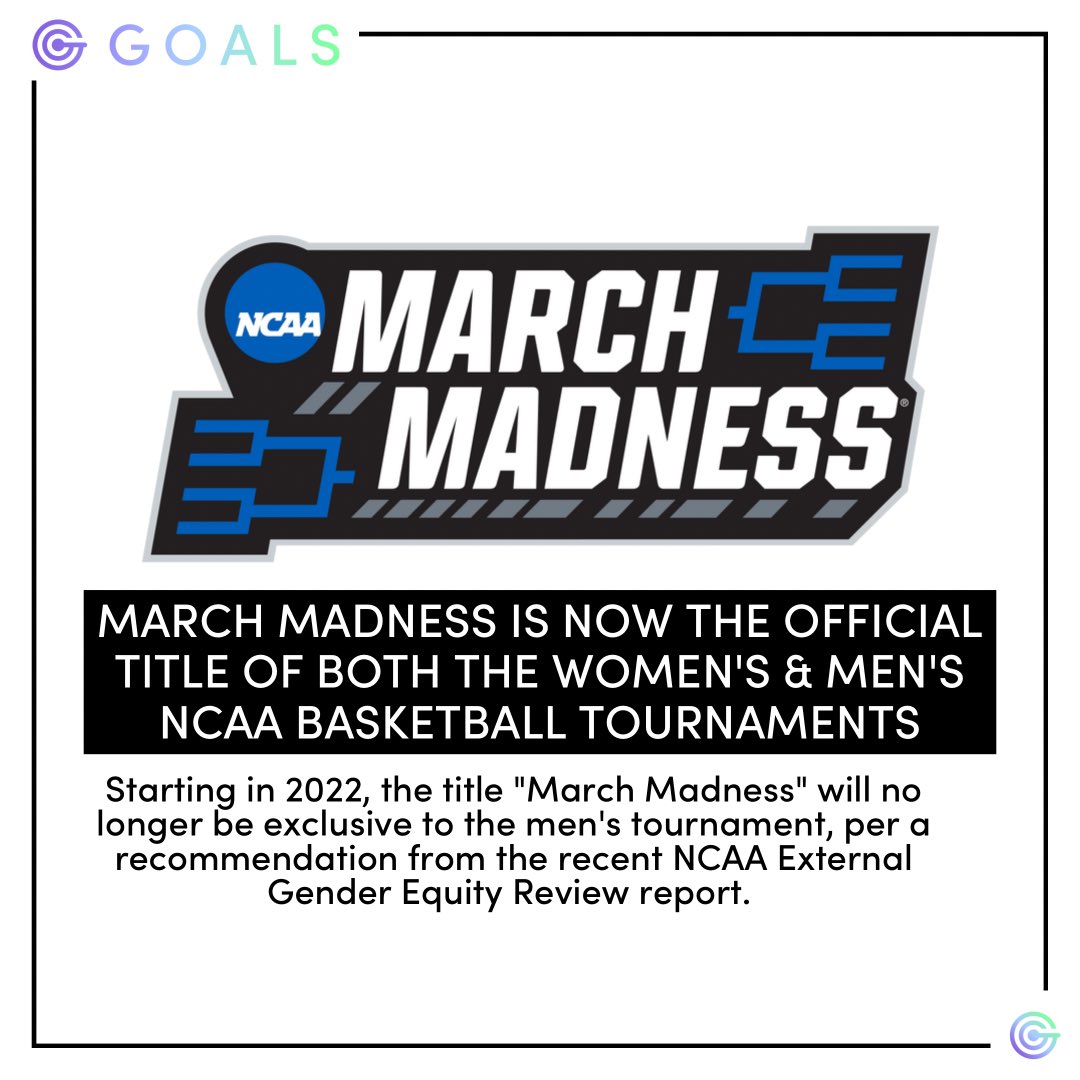 Goals Women S Sports On Twitter After Decades Of March Madness The Ncaa Women S Basketball Tournament Both The Women S Men S Ncaa Basketball Tournaments Will Be Branded As March Madness The